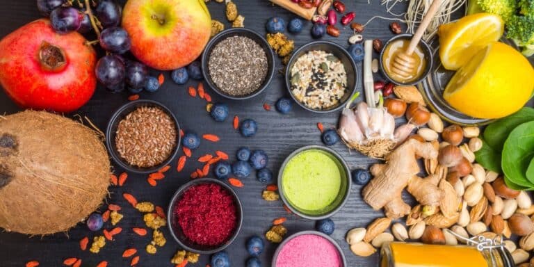 Bohaté zdroje: Bobule (ako čučoriedky a jahody), citrusové plody (ako pomaranče a citróny), listová zelenina (špenát a kel), krížová zelenina (brokolica a ružičkový kel), paradajky, strukoviny, orechy, semená a celé zrná.